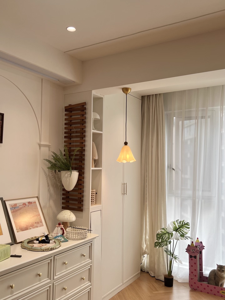 It blends perfectly with the decoration of my home. The glass lampshade is crystal clear, the light and shadow are super beautiful when the light is turned on, and the seller's service is also very thoughtful!
