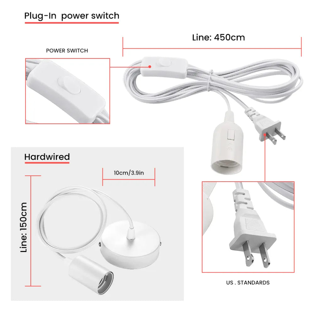 | Cord Length | 1.5m(Hardwired),4.5m(Plug-In) |