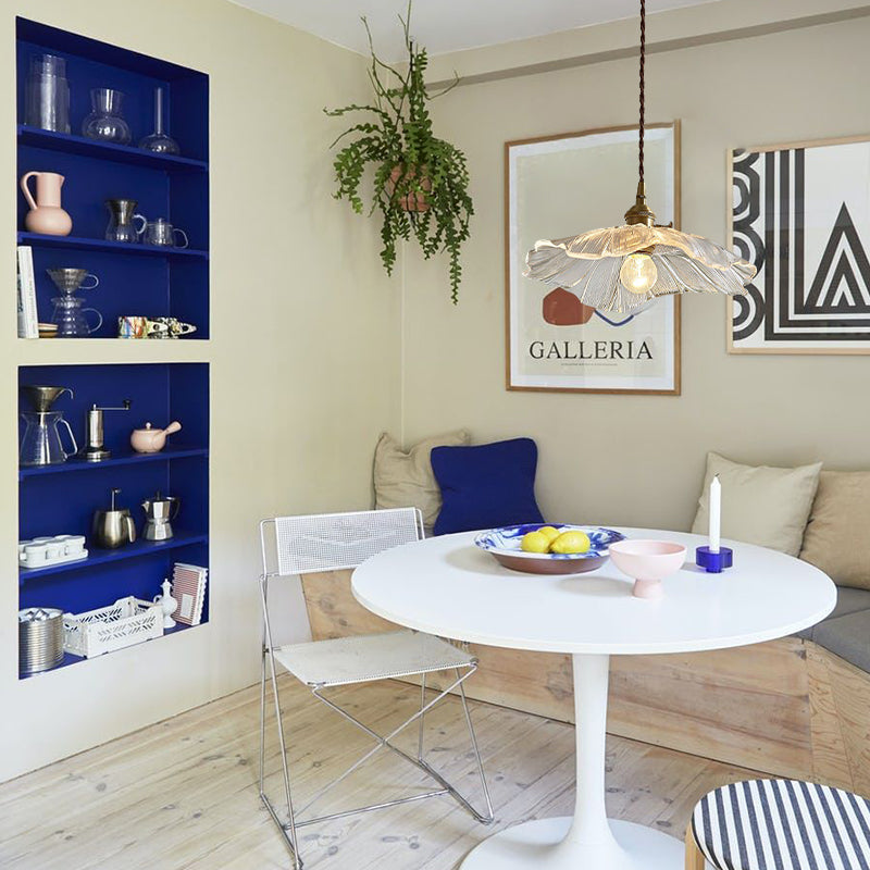 The Retro Lotus Leaf Shape Glass Pendant Lamp is a stunning enhancement for any home, featuring a delicate, transparent shade that evokes a charming sense of nostalgia. Experience the enduring allure of retro design, which is perfect for elevating the ambiance of any room and creating a warm, inviting atmosphere.